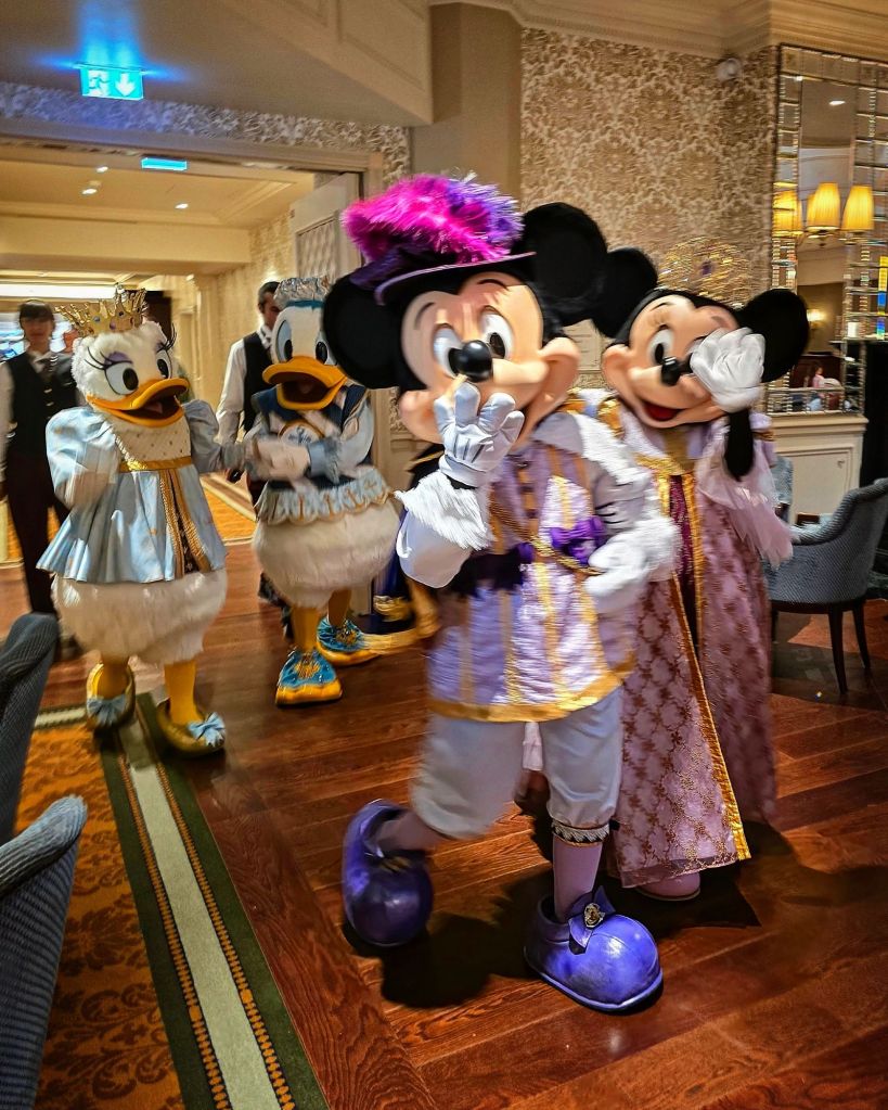 Since we couldn’t get dessert at Stark Factory, we headed over to the Disneyland Hotel. On our last trip there was a reservation system to get into the hotel as it hadn’t long opened and they were limiting access. This time it was open to freely come and go, and it was much quieter inside. One of our DLP traditions, prior to the hotel closing for refurb, was going to Cafe Fantasia for a drink. The bar is now called Fleur de Lys and has been redecorated in keeping with the overall royal / princess theme of the hotel. It is still a nice place to sit with a drink… but I miss the live musicians we used to have.
